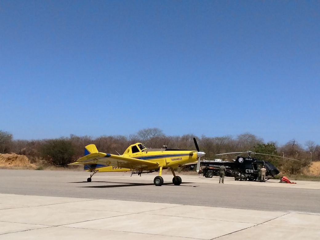 Helicóptero com capacidade de 540 litros de água e a Aeronave com capacidade de 2000 litros de água.