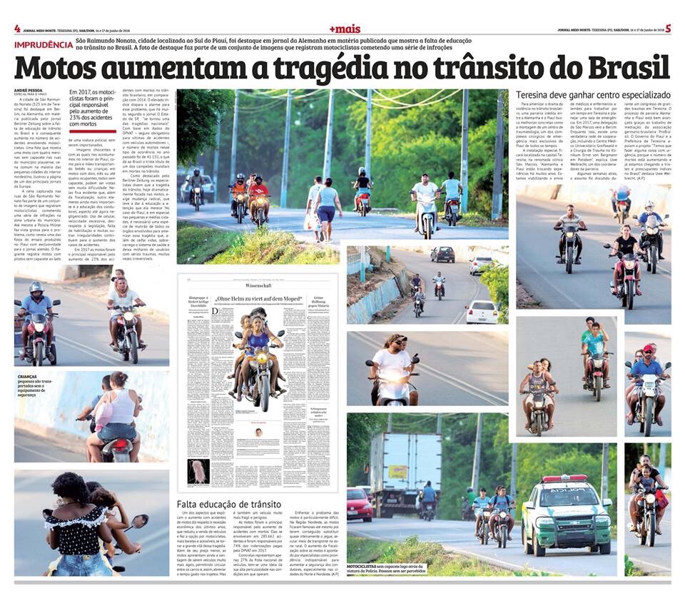 O jornal europeu Berliner Zeitung da capital da Alemanha, Berlim, publicou reportagem sobre o drama dos acidentes de motos no Brasil, em especial no Piauí. A foto da reportagem é de André Pessoa e foi captada nas ruas da cidade de São Raimundo Nonato (525 km de Teresina).