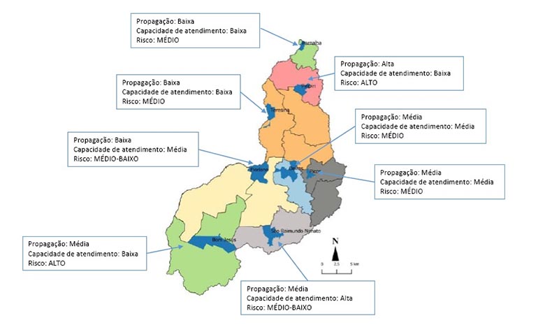 O outro território que apresenta risco epidemiológico alto para a Covid-19 é o da Chapada das Mangabeiras, que compreende os municípios do extremo sul do Piauí e que tem Bom Jesus como cidade pólo. A região apresenta índice de propagação da doença considerado médio e a menor capacidade atendimento entre os oito territórios avaliados.