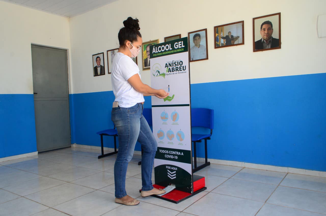 A Prefeitura Municipal de Anísio de Abreu fez a aquisição de totens com dispenser de álcool em gel, com pedal para ajudar na higiene das mãos e no enfrentamento ao coronavírus. Os equipamentos foram distribuídos e instalados nos espaços públicos.