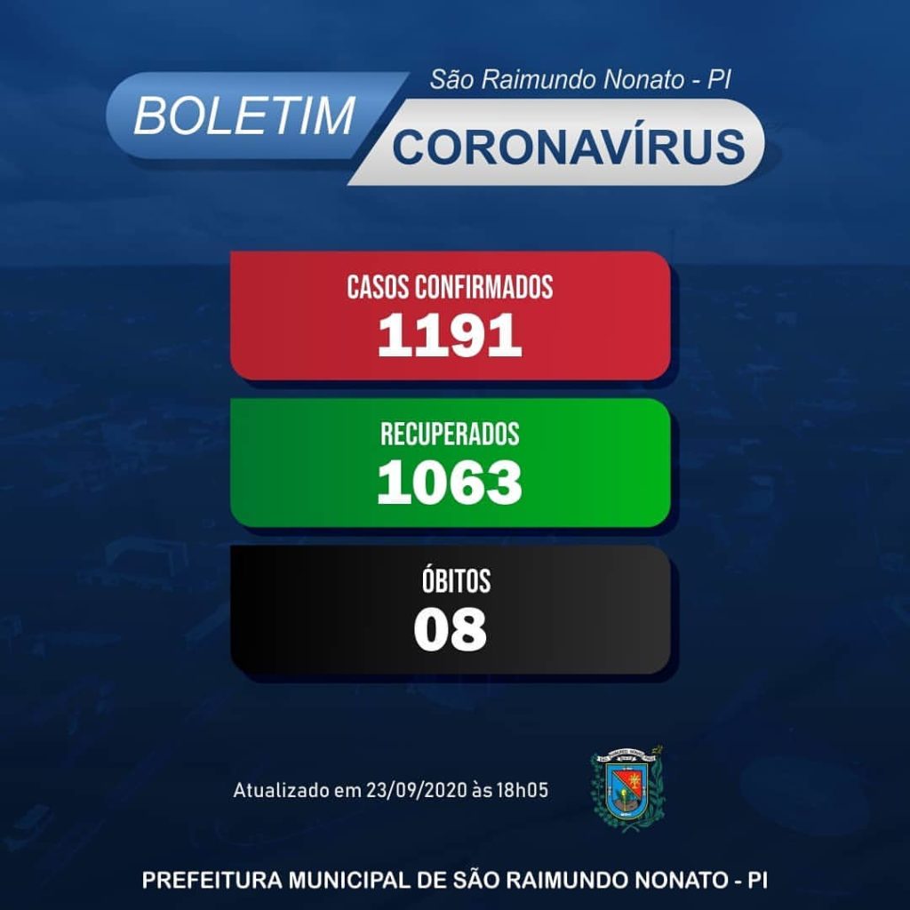 Coronavírus: São Raimundo Nonato tem 1.191 casos confirmados, 1.063 recuperados e 08 óbitos