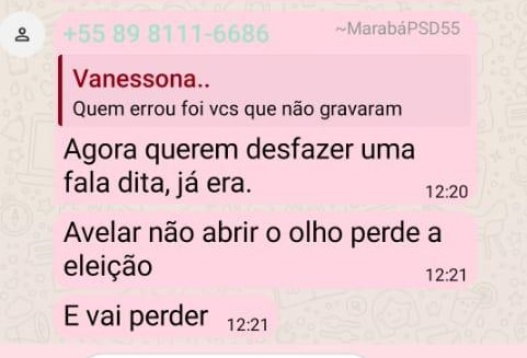 A fala causou mal estar até mesmo entre os seus aliados. Um assessor próximo ao candidato Avelar Ferreira, escreveu em grupos de WhatsApp, que ele “não tem equipe”, “só tem bajuladores que vão bater palmas e achá-lo bonito, não tem coragem de dizer a verdade”. “É por isso que ele perde”, disse. Alguns retrucaram a fala dizendo que a mesma estaria sendo manipulada ou até mesmo editada.