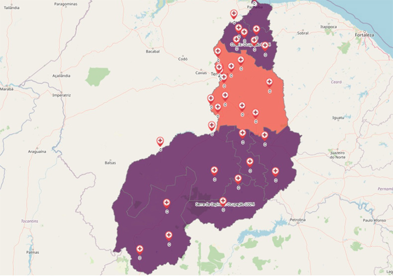 Fonte: Fiocruz/Ufpi – Territórios em roxo está com 100% de ocupação dos leitos de UTI.