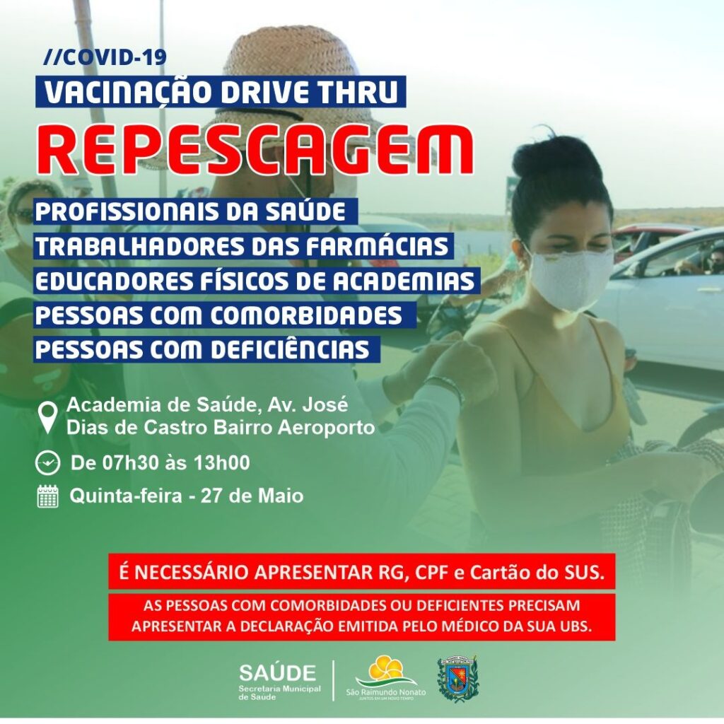 A Prefeitura de São Raimundo Nonato, através da Secretaria Municipal da Saúde, vacinou 1.002 profissionais da área de educação, no primeiro dia da imunização contra a Covid-19, no drive thru do último sábado 22/05.